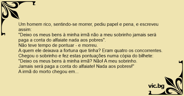 Um homem rico, sentindo-se morrer, pediu papel e pena, e escreveu assim: