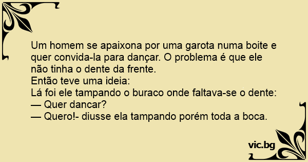 Um homem se apaixona por uma garota numa boite e quer convida-la para dançar. O problema é que ele não tinha o dente da frente.