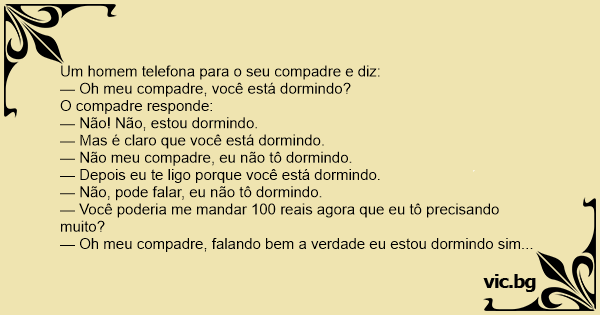 — Não meu compadre, eu não tô dormindo.