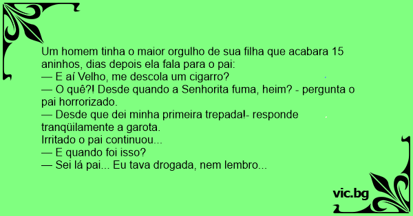 Um homem tinha o maior orgulho de sua filha que acabara 15 aninhos, dias depois ela fala para o pai: