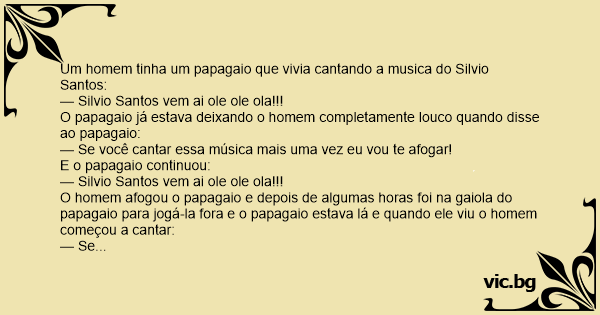 Um homem tinha um papagaio que vivia cantando a musica do Silvio Santos:
