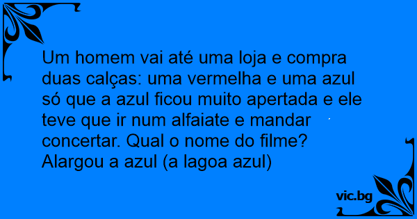 Um homem vai até uma loja e compra duas calças: uma vermelha e uma azul só que a azul ficou muito apertada e ele teve que ir num alfaiate e mandar concertar. Qual o nome do filme?