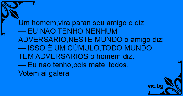 — EU NAO TENHO NENHUM ADVERSARIO,NESTE MUNDO o amigo diz: