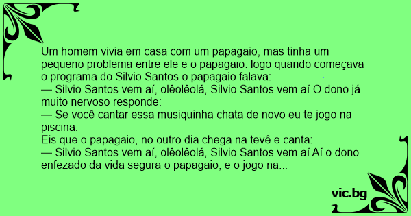 Um homem vivia em casa com um papagaio, mas tinha um pequeno problema entre ele e o papagaio: logo quando começava o programa do Silvio Santos o papagaio falava: