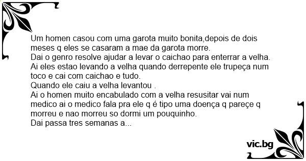 Um homen casou com uma garota muito bonita,depois de dois meses q eles se casaram a mae da garota morre.
