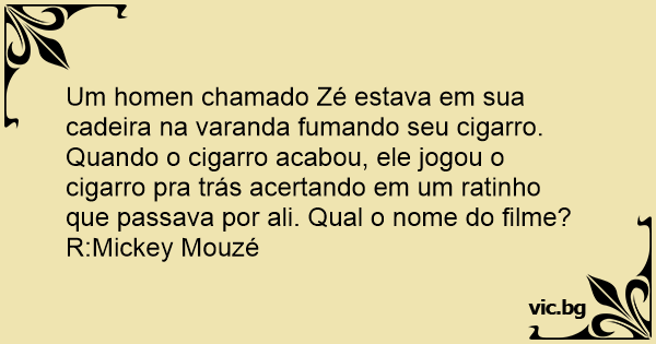 Um homen chamado Zé estava em sua cadeira na varanda fumando seu cigarro. Quando o cigarro acabou, ele jogou o cigarro pra trás acertando em um ratinho que passava por ali. Qual o nome do filme?