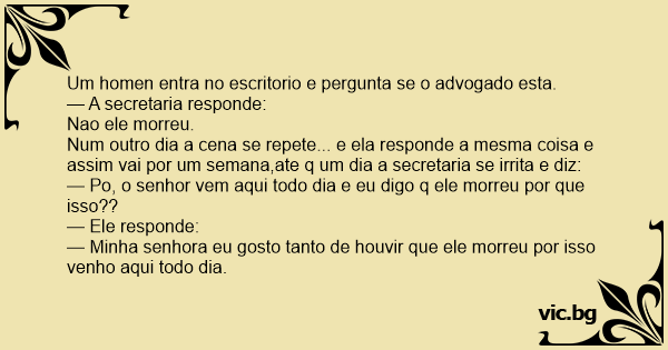 Num outro dia a cena se repete... e ela responde a mesma coisa e assim vai por um semana,ate q um dia a secretaria se irrita e diz: