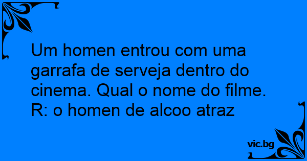 Um homen entrou com uma garrafa de serveja dentro do cinema. Qual o nome do filme.