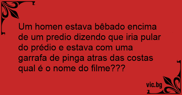 Um homen estava bêbado encima de um predio dizendo que iria pular do prédio e estava com uma garrafa de pinga atras das costas qual é o nome do filme???