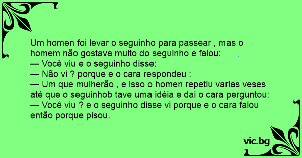 Um homen foi levar o seguinho para passear , mas o homem não gostava muito do seguinho e falou: