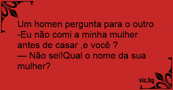 Um homen pergunta para o outro -Eu não comi a minha mulher antes de casar ,e você ?