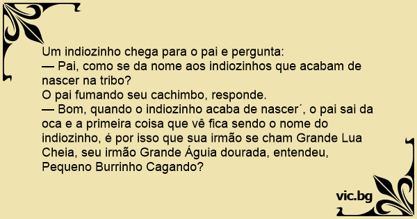 — Pai, como se da nome aos indiozinhos que acabam de nascer na tribo?