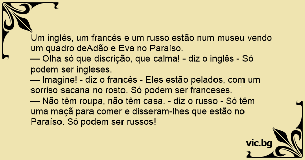 Um inglês, um francês e um russo estão num museu vendo um quadro deAdão e Eva no Paraíso.