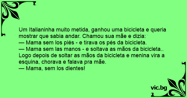 Um Italianinha muito metida, ganhou uma bicicleta e queria mostrar que sabia andar. Chamou sua mãe e dizia: