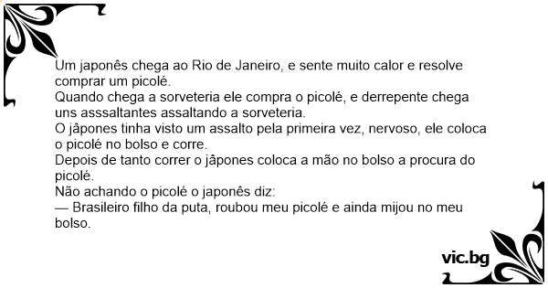 Um japonês chega ao Rio de Janeiro, e sente muito calor e resolve comprar um picolé.