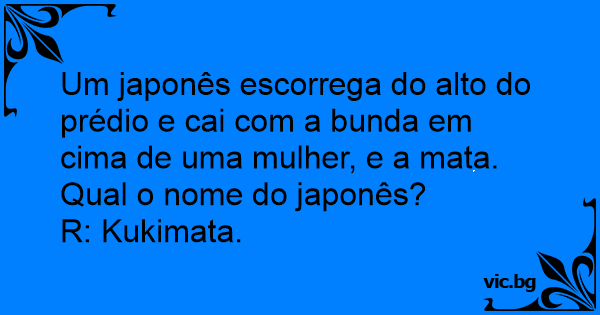 Um japonês escorrega do alto do prédio e cai com a bunda em cima de uma mulher, e a mata. Qual o nome do japonês?
