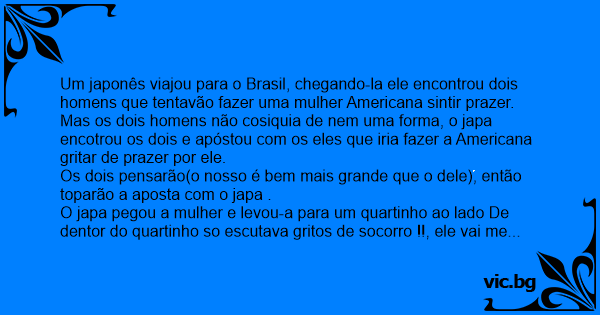 Os dois pensarão(o nosso é bem mais grande que o dele), então toparão a aposta com o japa .