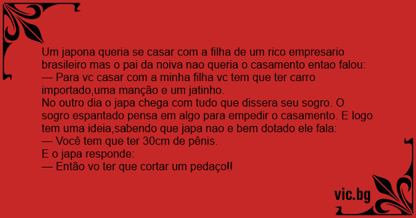 Um japona queria se casar com a filha de um rico empresario brasileiro mas o pai da noiva nao queria o casamento entao falou: