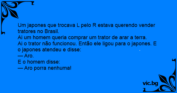 Um japones que trocava L pelo R estava querendo vender tratores no Brasil.