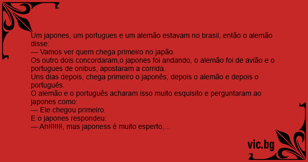 O alemão e o português acharam isso muito esquisito e perguntaram ao japones como: