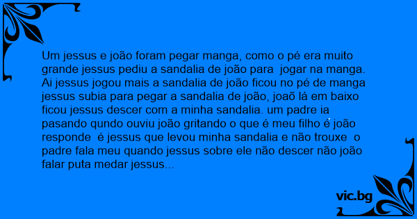 Um jessus e joão foram pegar manga, como o pé era muito grande jessus pediu a sandalia de joão para jogar na manga.