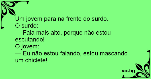 No ônibus um garoto está mascanbdo um chicléte enquanto a velha só observa, faz caretas de quem nao está entendendo algo, derrepente diz: — Nao adianta insistir!sou completamente surda!!!