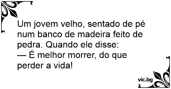 Um jovem velho, sentado de pé num banco de madeira feito de pedra. Quando ele disse:
