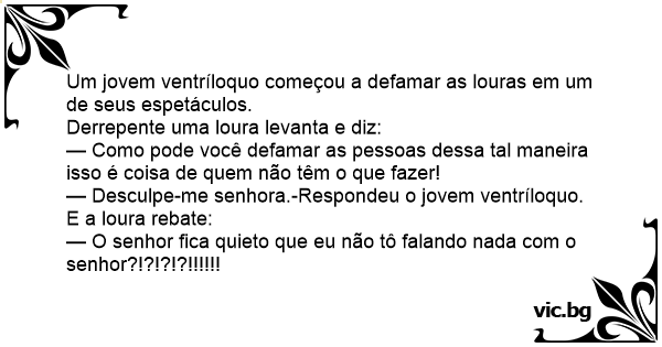 — Como pode você defamar as pessoas dessa tal maneira isso é coisa de quem não têm o que fazer!