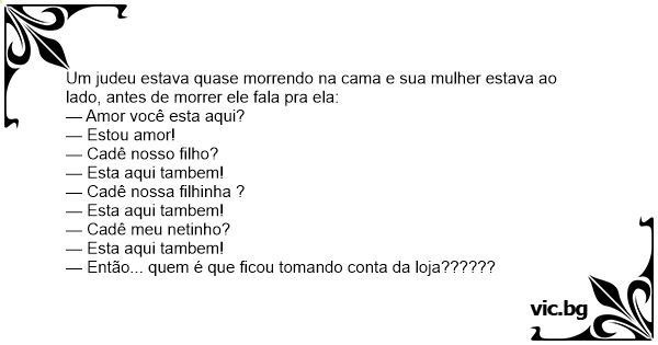 Um judeu estava quase morrendo na cama e sua mulher estava ao lado, antes de morrer ele fala pra ela: