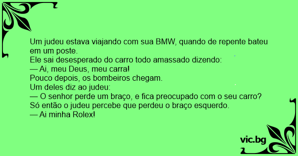 Um advogado estacionou seu BMW novo em folha na frente de seu escritório, pronto para mostrá-lo aos seus colegas. Logo que ele abriu a porta para sair, um caminhão passou raspando e arrancou...