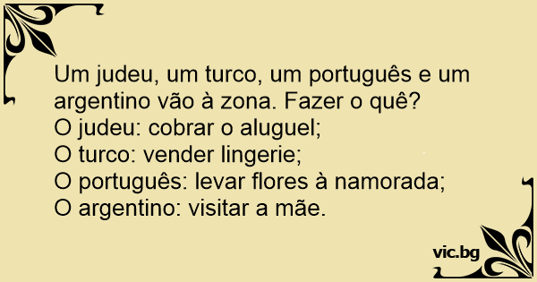 Um judeu, um turco, um português e um argentino vão à zona. Fazer o quê?