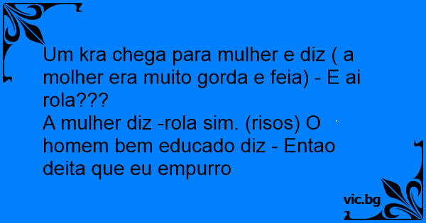 Um kra chega para mulher e diz ( a molher era muito gorda e feia) - E ai rola???