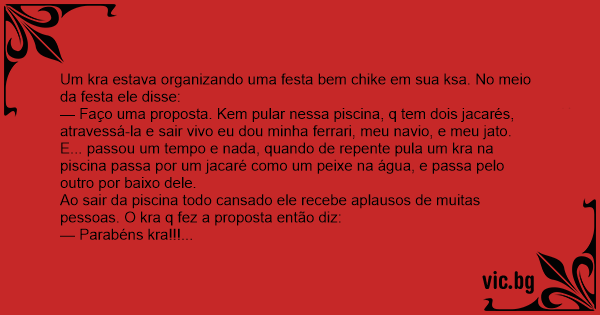 Um kra estava organizando uma festa bem chike em sua ksa. No meio da festa ele disse: