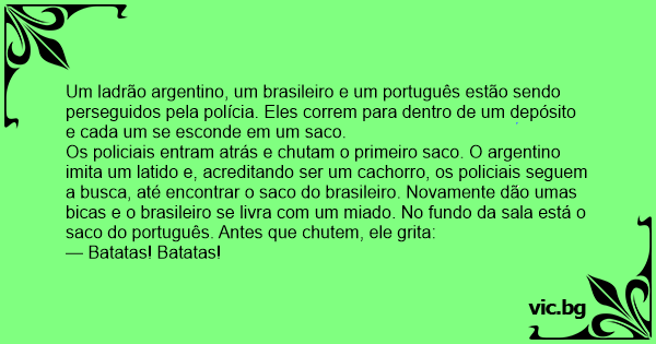 Um ladrão argentino, um brasileiro e um português estão sendo perseguidos pela polícia. Eles correm para dentro de um depósito e cada um se esconde em um saco.