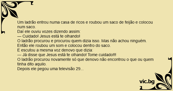 — Já disse que Jesus está te olhando! Tome cuidado!!!