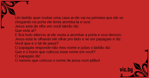Jesus esta te olhando ele olhar pro lado e ve um papagaio e diz: