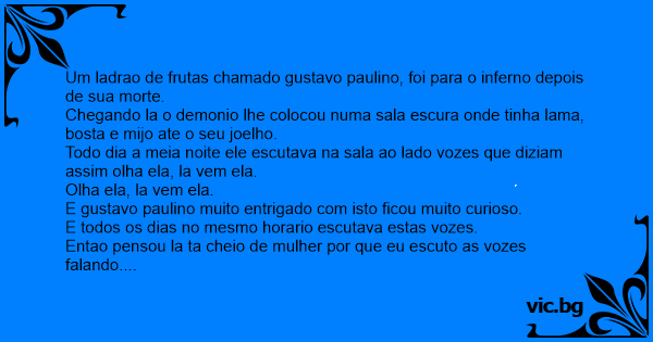 Um ladrao de frutas chamado gustavo paulino, foi para o inferno depois de sua morte.