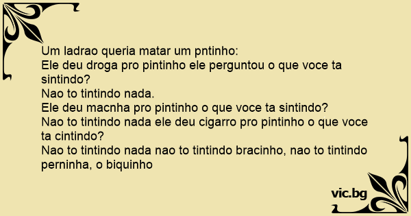 Nao to tintindo nada ele deu cigarro pro pintinho o que voce ta cintindo?