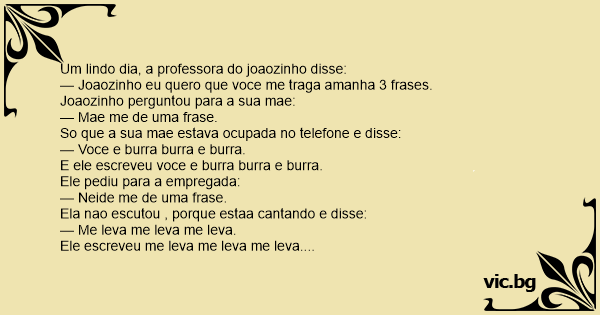— Joaozinho eu quero que voce me traga amanha 3 frases.