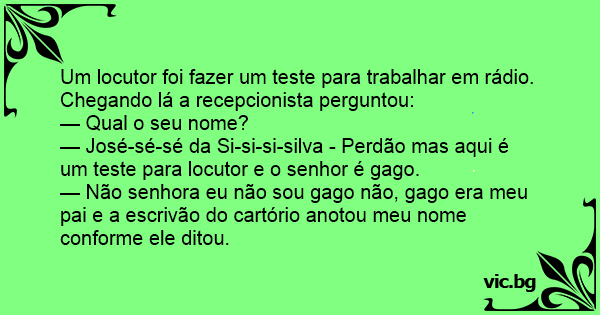— José-sé-sé da Si-si-si-silva - Perdão mas aqui é um теsте para locutor e o senhor é gago.
