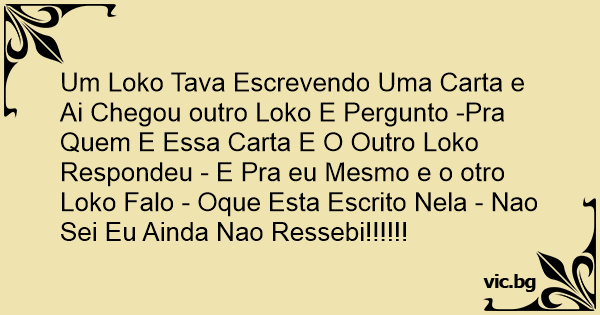 Um Loko Tava Escrevendo Uma Carta e Ai Chegou outro Loko E Pergunto -Pra Quem E Essa Carta E O Outro Loko Respondeu - E Pra eu Mesmo e o otro Loko Falo - Oque Esta Escrito Nela - Nao Sei Eu Ainda Nao Ressebi!!!!!!