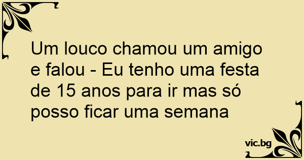Um louco chamou um amigo e falou - Eu tenho uma festa de 15 anos para ir mas só posso ficar uma semana