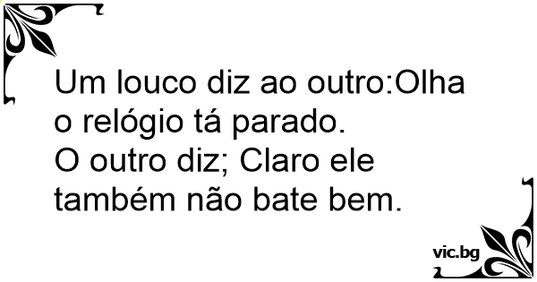 Um louco diz ao outro:Olha o relógio tá parado.