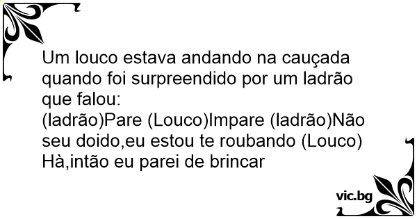 Um louco estava andando na cauçada quando foi surpreendido por um ladrão que falou: