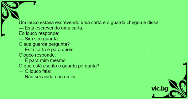 Um louco estava escrevendo uma carta e o guarda chegou e disse:
