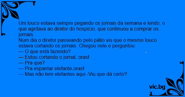 Num dia o diretor passeando pelo pátio viu que o mesmo louco estava cortando os jornais. Chegou nele e perguntou: