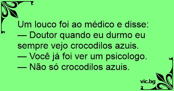 — Doutor quando eu durmo eu sempre vejo crocodilos azuis.