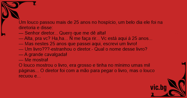 Um louco passou mais de 25 anos no hospício, um belo dia ele foi na diretoria e disse: