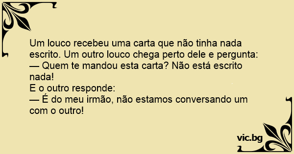 Um louco recebeu uma carta que não tinha nada escrito. Um outro louco chega perto dele e pergunta: