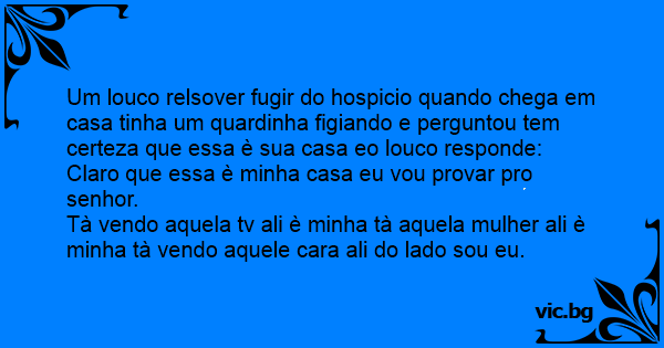 Um louco relsover fugir do hospicio quando chega em casa tinha um quardinha figiando e perguntou tem certeza que essa è sua casa eo louco responde: